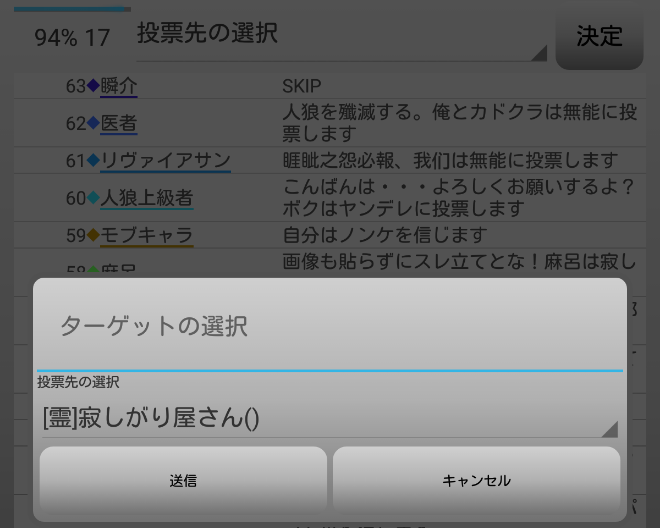 瞬介「議論はこれで終わり。投票の時間になります。霊能者の『寂しがり屋さんへ投票』をしよう」