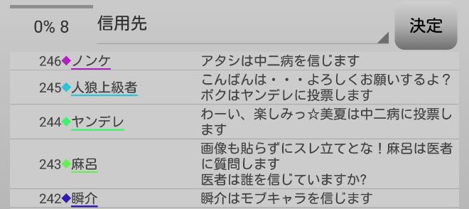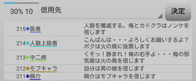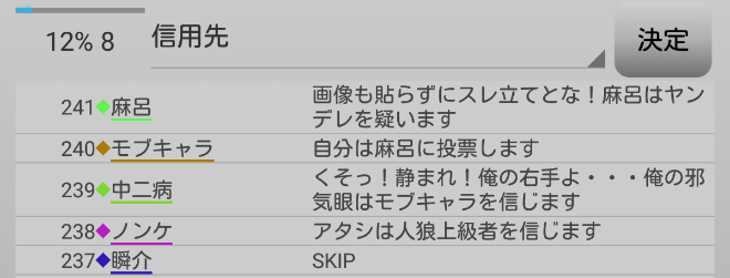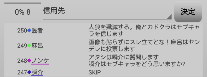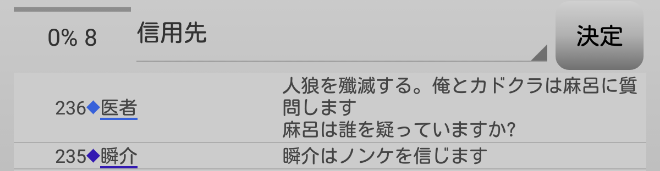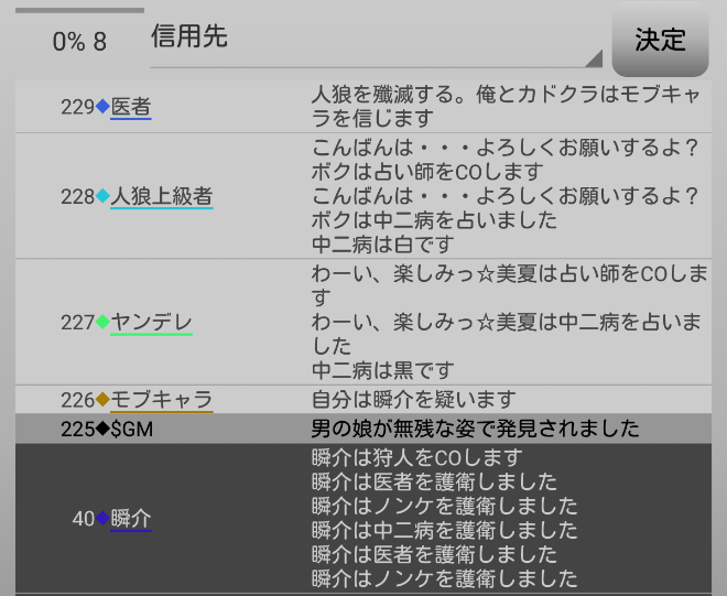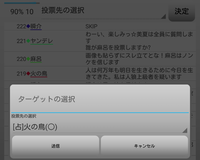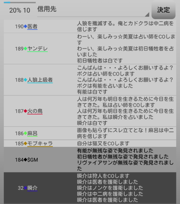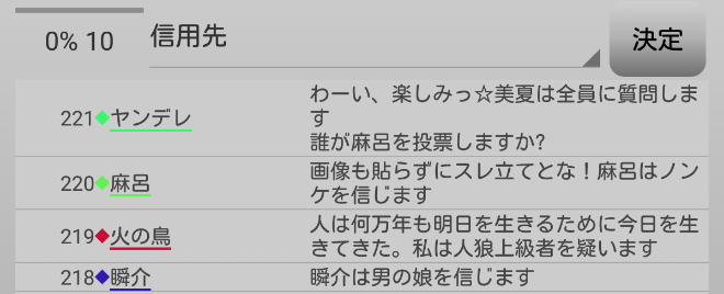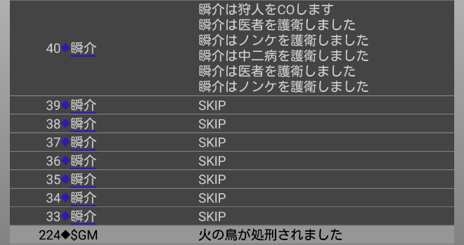 瞬介「とにかく今日は火の鳥を吊ってしまおう。俺は『火の鳥に投票をします!』」