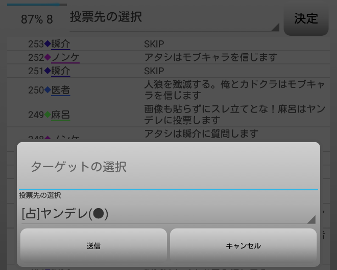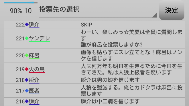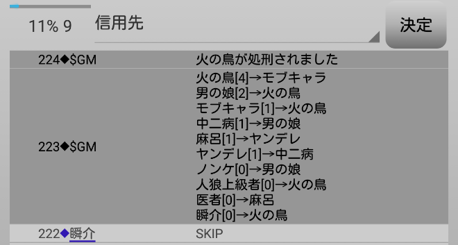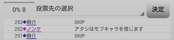 瞬介「最後の発言になります。投票意思を示さないままヤンデレへ投票をするから『スキップ』です!」