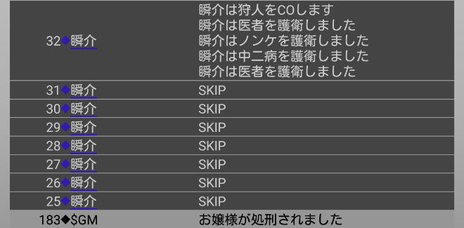 瞬介「最後の発言になります。ミスをしたけれど仕方ない。意思は示したので『スキップ』します」