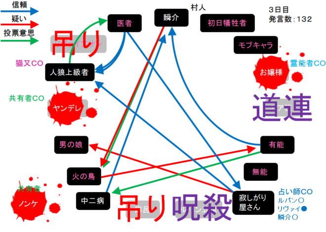 瞬介「3日目を開始する準備ができた(上の図)!それでは!狂人って何をやっているの?3日目よ来い来い!そいっ!」