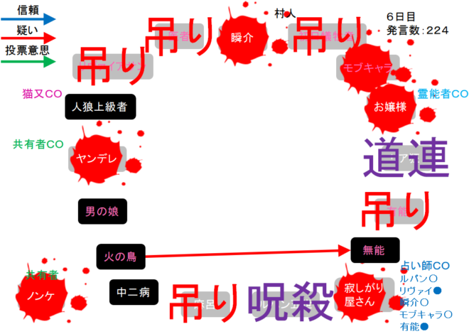 残りの発言は3回くらい?村が負ける寸前だけど、この局面を覆せるのかな?次にいきます。
