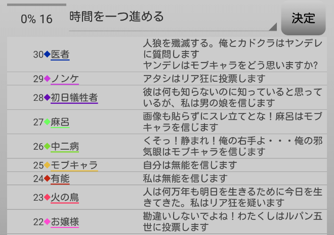希望役職占い師で時間を進めます。
