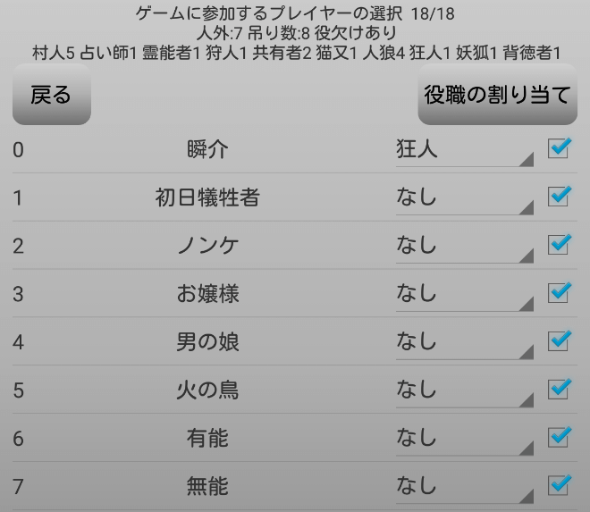 適当なプレイヤーに○を飛ばそう。○持ちは序盤の噛み対象になりやすい。グレランで生き残りやすい者を占おうかな。