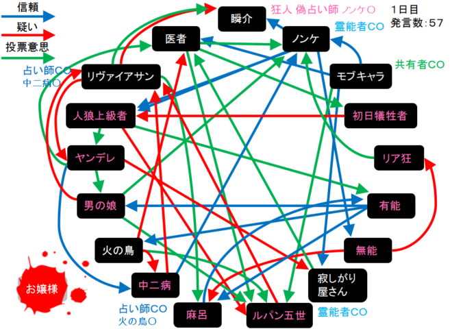 中二病が自身に○を出してくれたリヴァイアサンを疑っている。リヴァイアサンは真占い師でしょう?もしかして中二病は背徳者?
