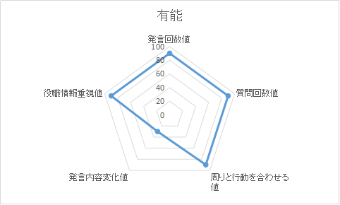 彼は潜伏が苦手だね。そして役職者になった際も信用で負けてしまうのを良く見かける。協調性が低いというのはかなり不利なんだろうね。だけどなんか憎めないんだよなあ(笑)。きっと敵にまわったり一緒に人狼を担当したことが多かったからだろう。発言内容変化値と役職情報重視値が最大なのはルパンだけなのでAIの傾向を読み解くためにも彼には注目していきたいなあ。