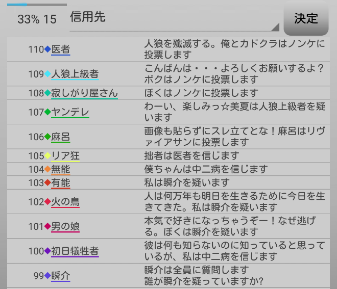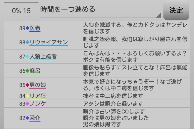 瞬介「『初日犠牲者、寂しがり屋さん、医者』は潜伏共有者っぽい。占い師を疑っている男の娘に●を出しましょう」