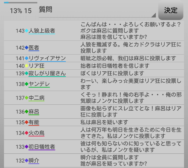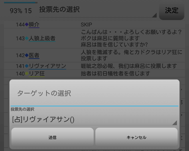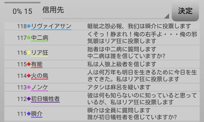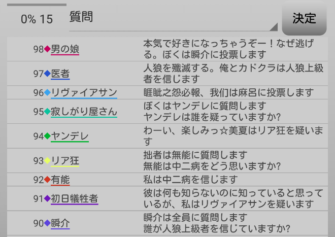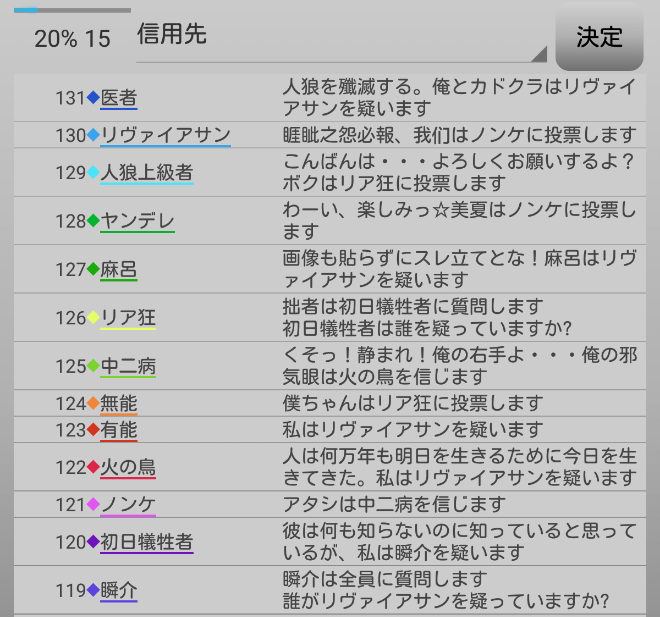 占い師を疑うプレイヤーを探します。誰か『リヴァイアサンを疑う人はいますか?』」