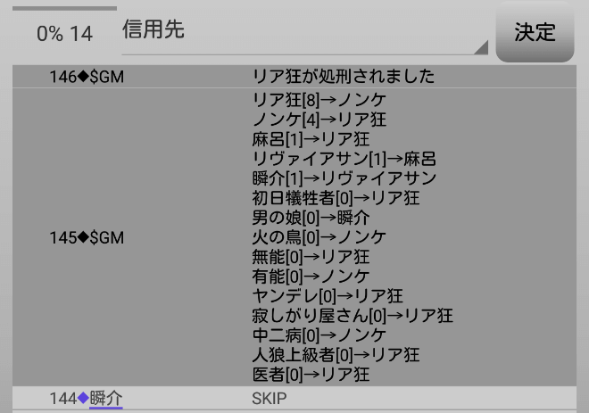 瞬介「麻呂(人狼占い師)はリア狂●、真占い師のリヴァイアサンは男の娘○を提示した」