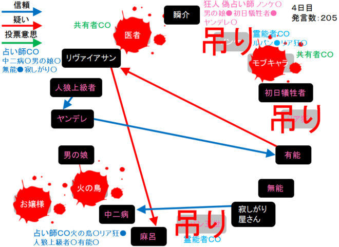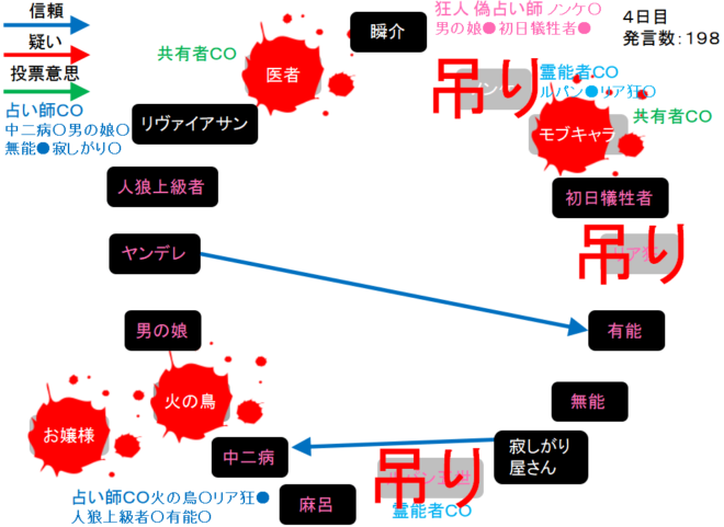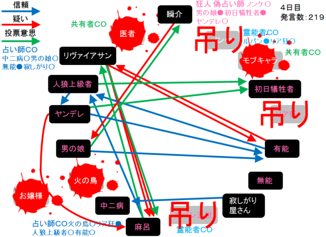 人狼候補に○を出すか?妖狐っぽいグレーに○を出すか?選択はそれしかないのです。