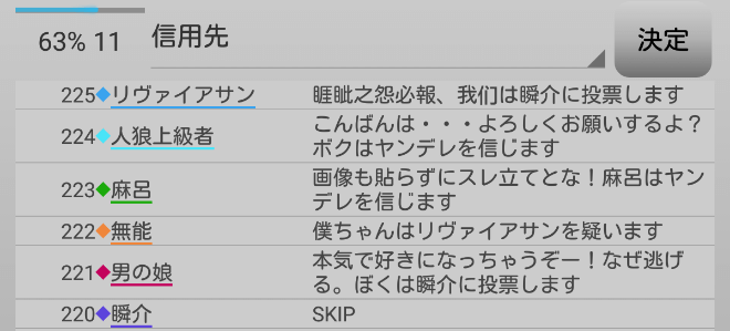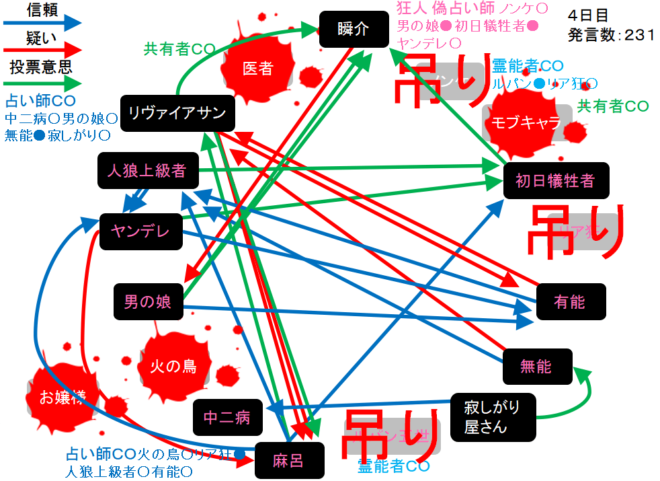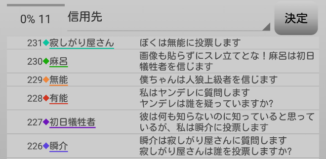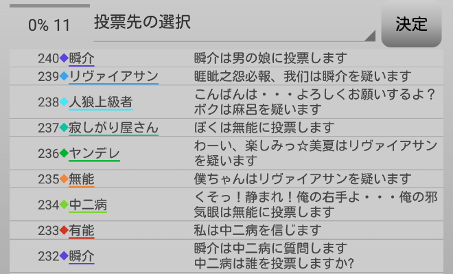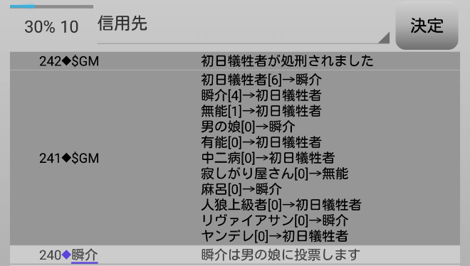 瞬介「あれ!?初日犠牲者を処刑できたよ!?みんな投票先を嘘ついている(笑)。お前らは議論を何だと思っているんだよ!」