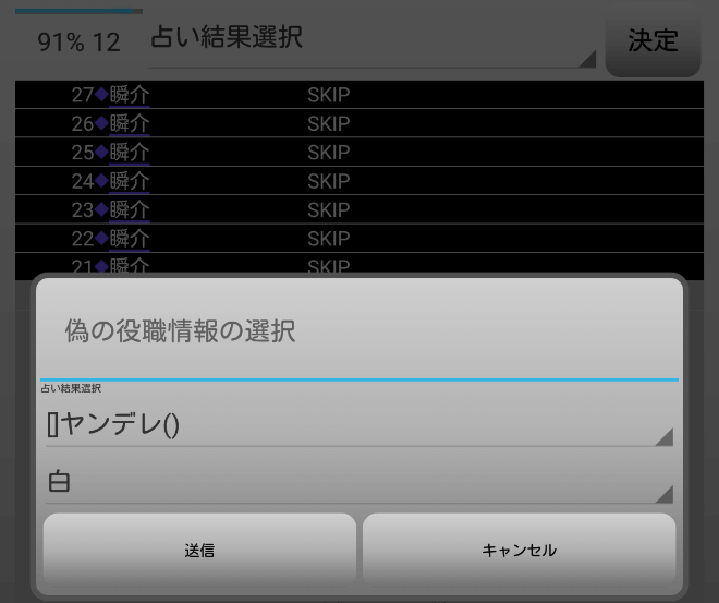 瞬介「そして麻呂(人狼占い師)は有能○を提示。仲間の人狼に○を出したのかな?人狼は有能かもしれない。偽占い結果を発表します!人狼っぽい『ヤンデレを占って○でした!』」