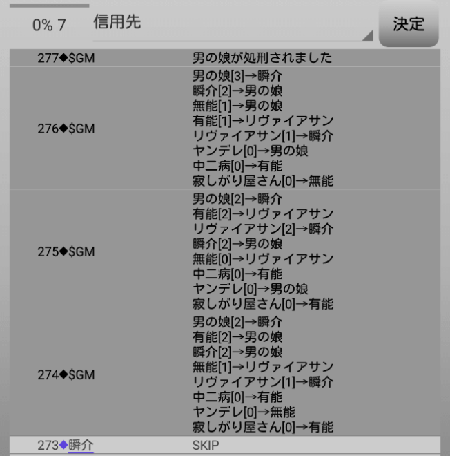 瞬介「おお!男の娘を処刑できたぞ!誰が男の娘に投票をしたの?ヤンデレと無能!?無能!よくやったあ!」
