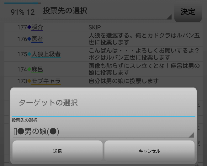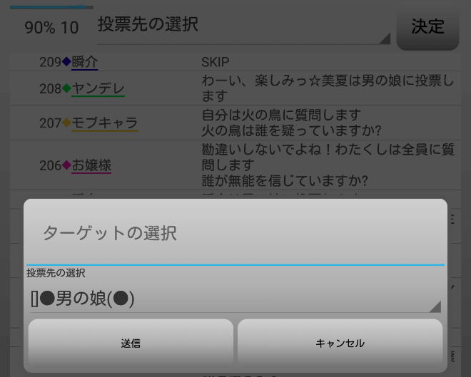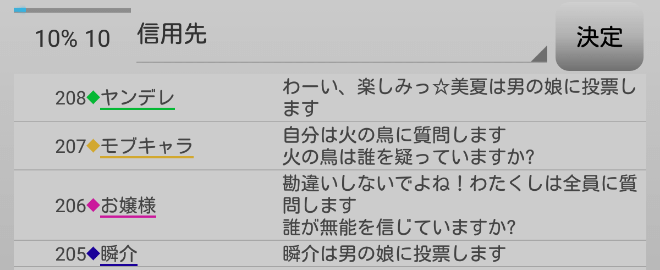 俺を挑発してCCOを狙っているのか?誘い受けかな(例えが間違ってる)?俺は男の娘へ投票をする『人狼上級者を信頼します!