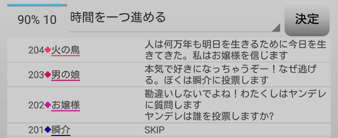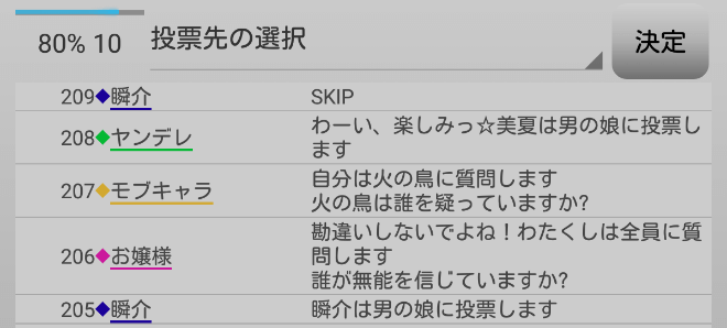 瞬介「議論はこれで終わり。投票の時間になります。人狼の『男の娘へ投票』をしよう。処刑できなくても良いけどね」