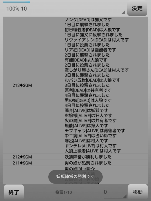瞬介「LWの男の娘を処刑して妖狐勝利になりました。勝因は一番最初の投票が再投票になったからですね」