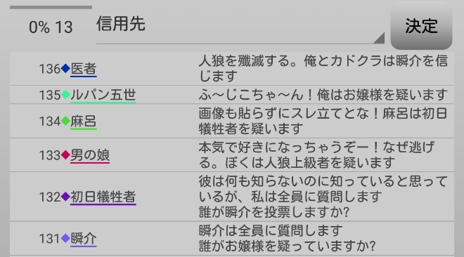 瞬介「占い師の○を疑ってしまった。村目線、配役は確定していないんだから無茶苦茶な発言だよなあ」