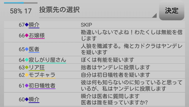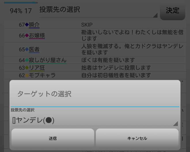 瞬介「議論はこれで終わり。投票の時間になります。●を出された『ヤンデレへ投票』をしよう」
