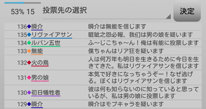 瞬介「マジでわからねえ。白い名前の者は村陣営だと決めつけて考えよう」