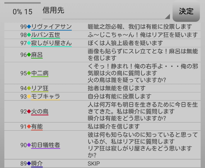 瞬介「次は麻呂を信頼しておこう。グレランで火の鳥や麻呂を処刑したら負けるからね。俺は『麻呂を信頼しています!』」