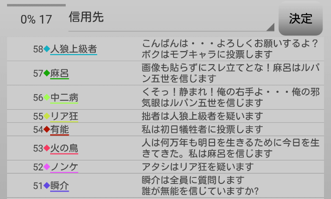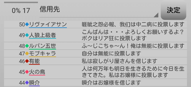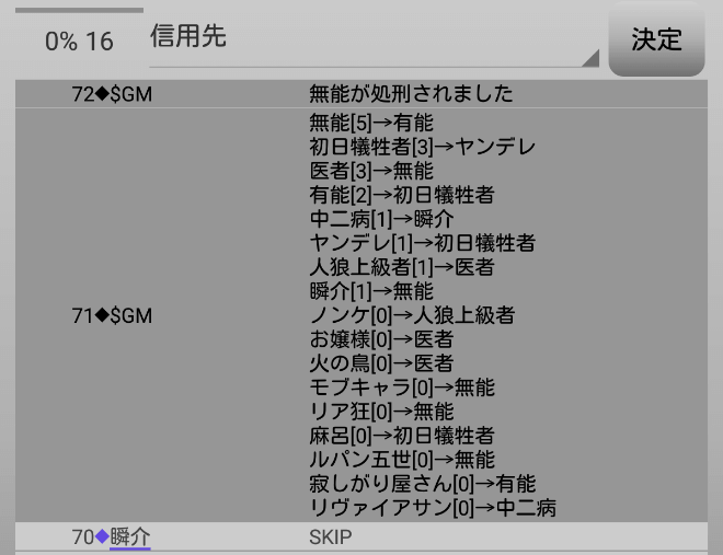 瞬介「無能の得票数が2位になれば占い候補になるだろうからね。俺はもう無能が人狼だと思っているから『無能を信頼します!』」