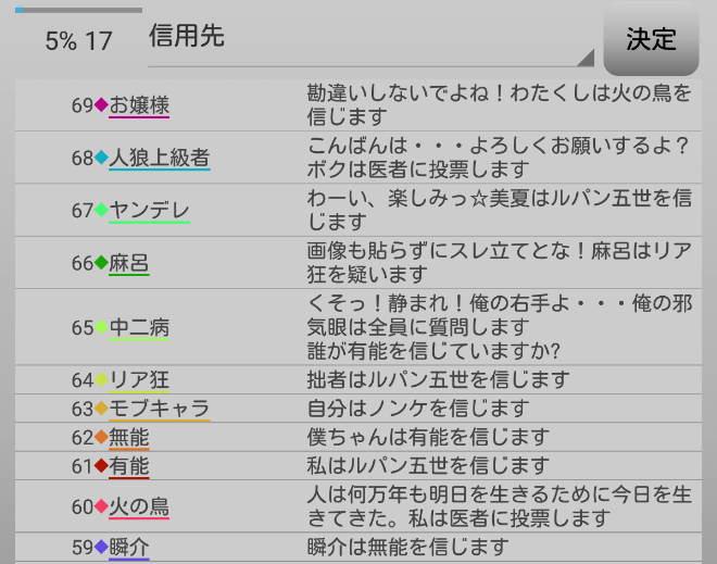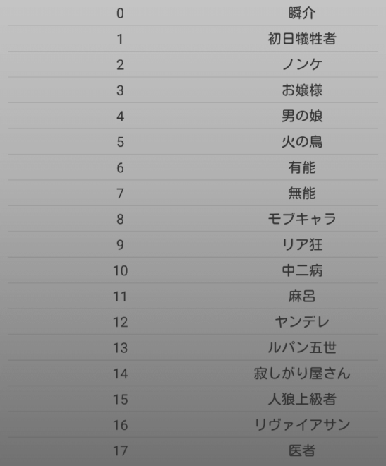 つまり・・・人狼が『ノンケ、お嬢様、無能、リヴァイアサン』ならば妖狐有利?そんな幸運は起きないか(笑)。
