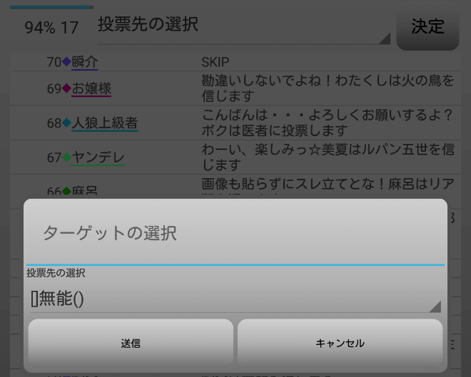 瞬介「議論はこれで終わり。投票の時間になります。人狼っぽい『無能へ投票』をしよう。運が良ければ処刑できるかもしれない」