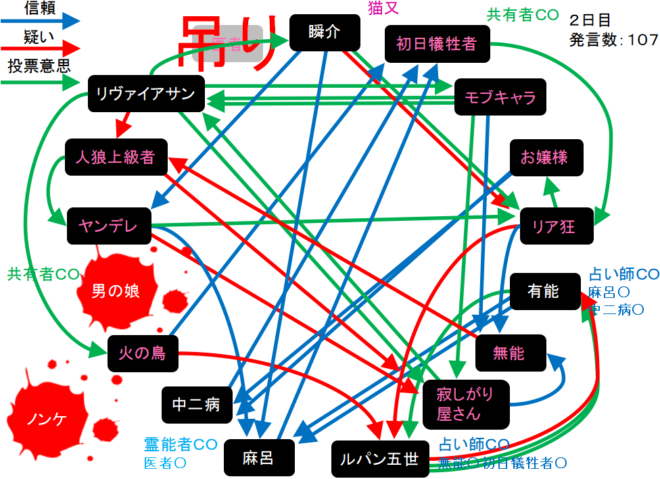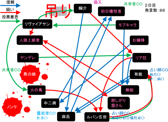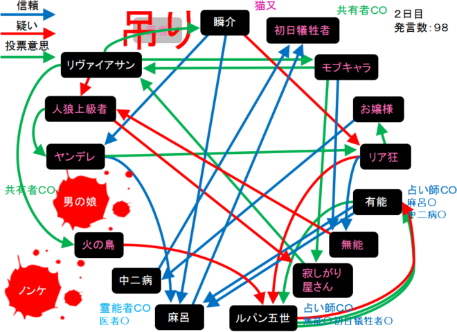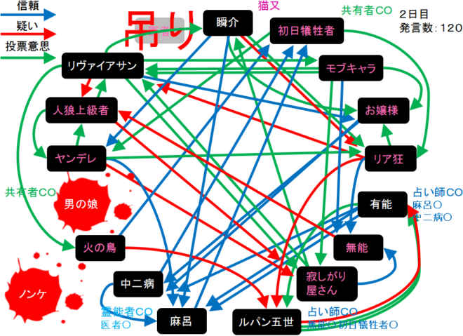 投票結果を分析してもよくわからん。早く明日の占い結果を見ようぜ。