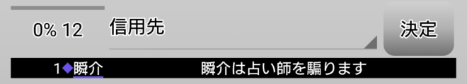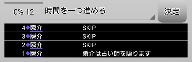 それでは前回のように無能へ占い結果○をセットしまして再開です。
