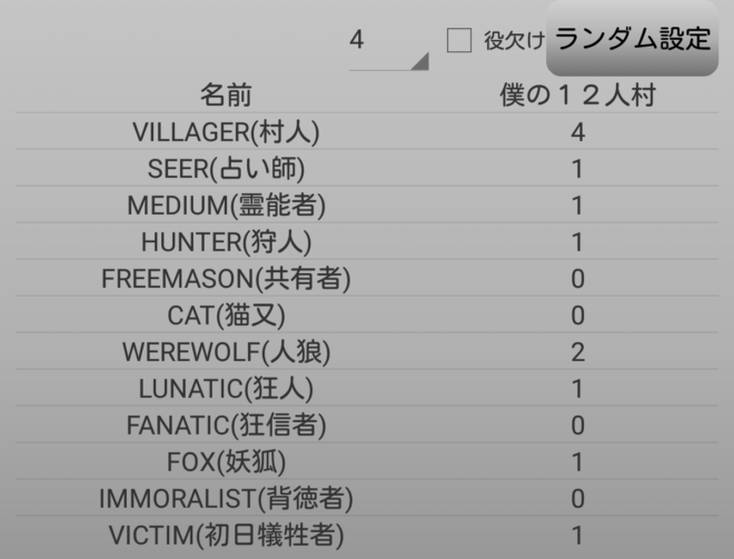 瞬介「今回は12人村の役欠けなしで村人を担当してプレイをします」