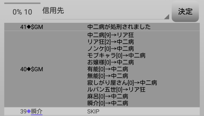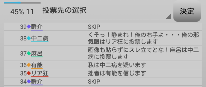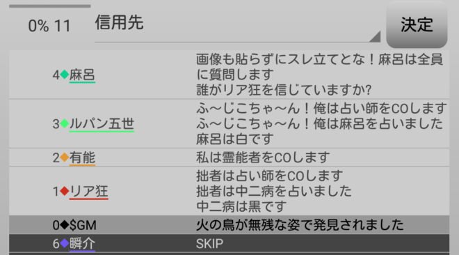 瞬介「この日は●吊りしか主張することはないだろう。最後も『スキップ』します!』