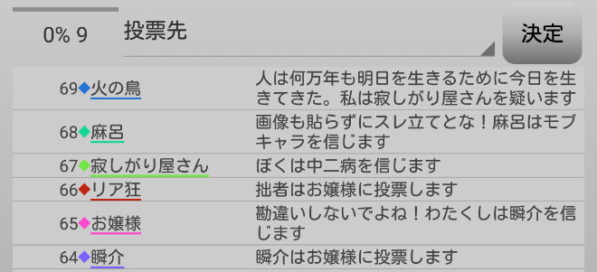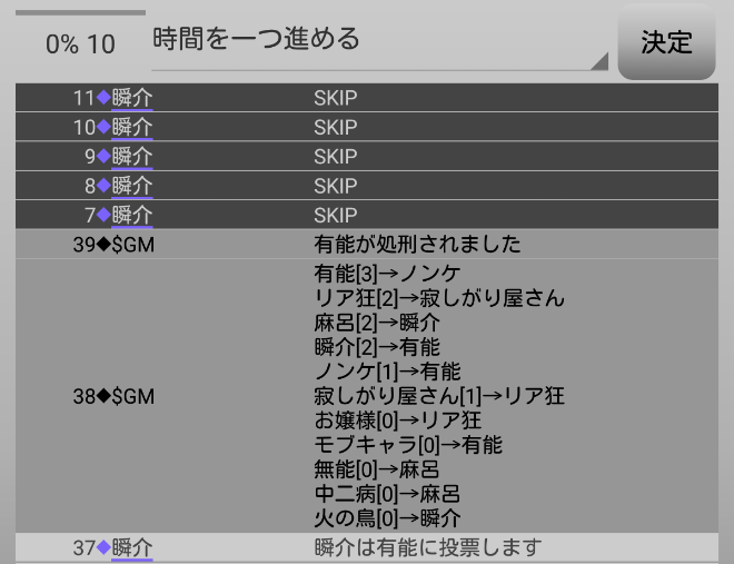 瞬介「議論はこれで終わり。投票タイムになります。俺は占い師2人へ投票を宣言したけど実際にはグレーのノンケに入れるのだ」