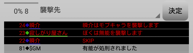 瞬介「今回はモブキャラ噛みの中二病に●出しだ。狂人が●を出さなければ、中二病吊りにはなるだろう。狂人がグレーモブキャラに●を出せば吊り回数消費の戦略に切り替えよう」