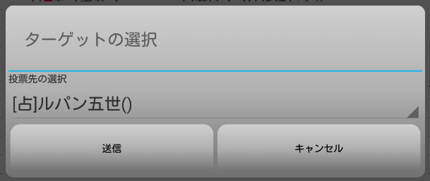 もう負けるのかと思って議論を最後まで飛ばしたら何これ。モブキャラと無能が真占い師へ投票宣言をしている。二人が人狼だったってこと?そんなら噛みに成功すれば勝っていたのに!投票の時間になりました。さて結果はどうなる!?