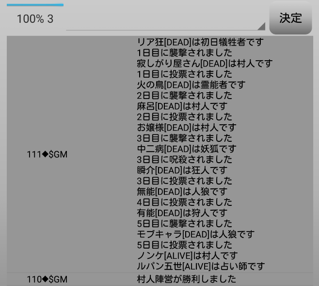 (この投稿はToshiki Mizukoshi様が制作されたスマートフォンアプリ「アンドロイドは人狼の夢を見るか?」のプレイ日記です。毎日更新をします)