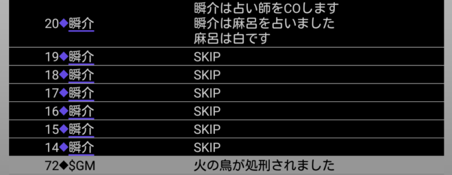 瞬介「火の鳥が寂しがり屋さんへ投票をしているとか!占い師を誘惑する投票はやめてよお!」