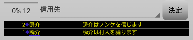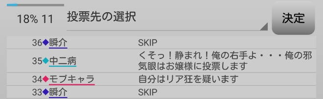 瞬介「あれ?最後の発言かと思っていたら5回目の発言だった。●吊りの時はあまり考えることが無い気がするので集中力を欠いてしまうな」