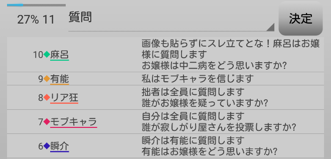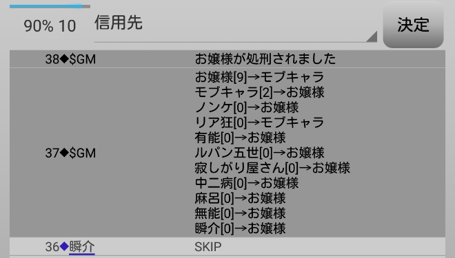 瞬介「議論はこれで終わり。投票の時間になります。『お嬢様に投票』をしよう。間違えて真(?)のモブキャラに入れたら呪殺されるだろうな」