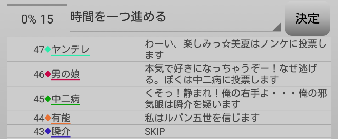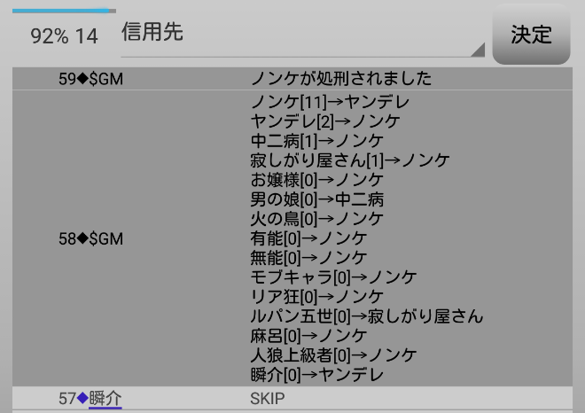 瞬介「最後の議論は俺のスキップのみで終了しました。投票の時間になります。対抗占い師のヤンデレに投票するかあ」