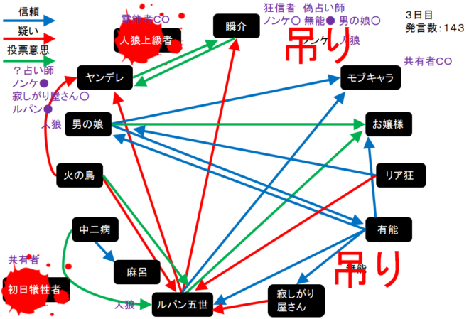 それでは?呪殺か否かの3日目よ来い来い!そいっ!