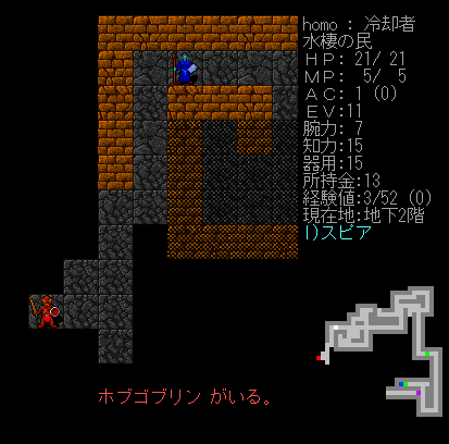 現れる敵は地下1階と変わらないのかな?ホブゴブリンやコボルドと遭遇しております。むしろ敵の数が減っているような(気のせい)。