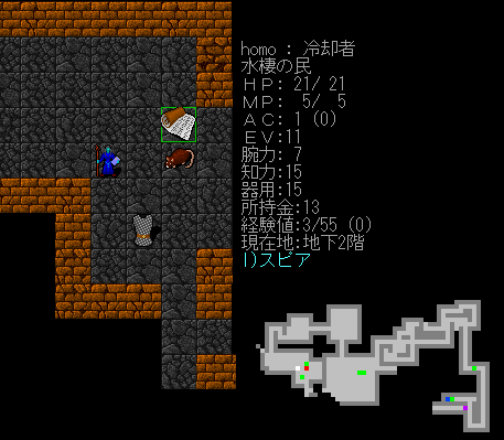 Dungeon Crawlのプレイ日記を始めます。地下2階に舞い降りました。さて、どんな敵が出現をするのかな?