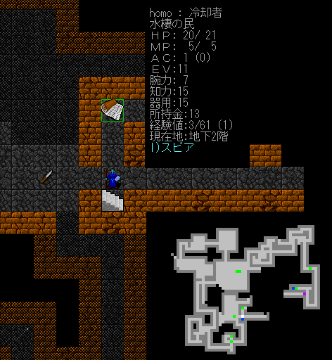 探索が順調すぎる。ろくに敵が出てこないからレベルは3のままなのに降りる階段を発見してしまった。このまま収獲もなく地下2階の探索は終わるのか。
