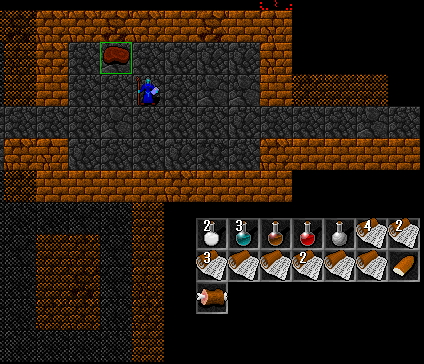 まともな肉を見つけました。食料はパン1つだけだったから嬉しいです。探索も順調だし祭壇まで餓死の心配は無くなったのかな。