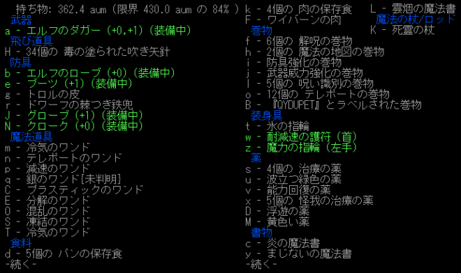 テレポートの巻物は読んだ瞬間に囲まれて死ぬだろう。瞬間移動の巻物を使う時がきたか。この巻物は強力だが1枚しか持っていないのです。以後の僕は瞬間移動の巻物を失ったショックで焦りながらプレイをします。