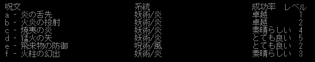 『火柱の幻出』の成功率は『素晴らしい』です。問題なく使えるでしょう。1度も使用したことがないから練習をしておきます。