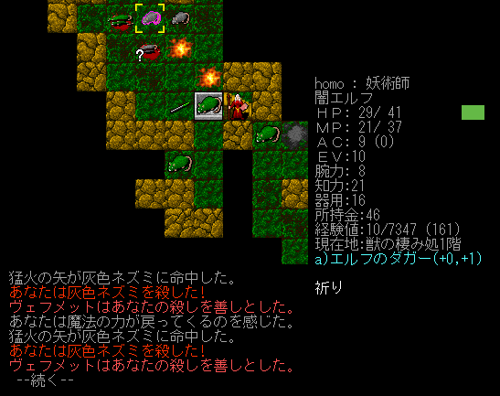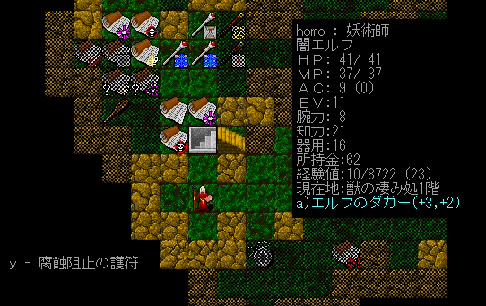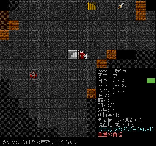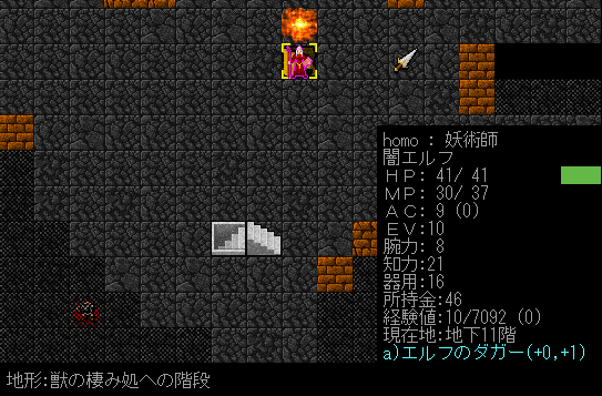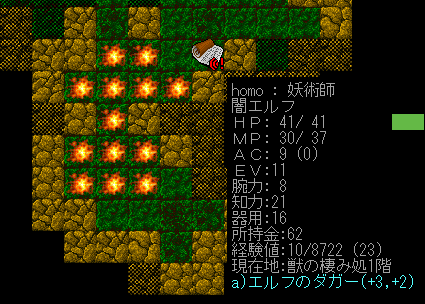 Dungeon Crawlのプレイ日記を始めます。闇エルフ炎の精霊使いをプレイ中です。地下10階の探索が終わりました。しかし、強敵に襲われて自信を喪失。落ち着いてプレイを見直そうと反省中です。