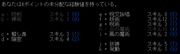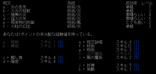 これからは呪術のスキルを上げていこう。飛来物の阻止や加速は重要な魔法なのです(使ったことはない)。