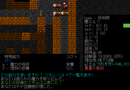 700ものスキル経験値を祈祷につぎ込みました。0だった祈祷のスキルが5になる。よし、これで地下11階に挑みます!