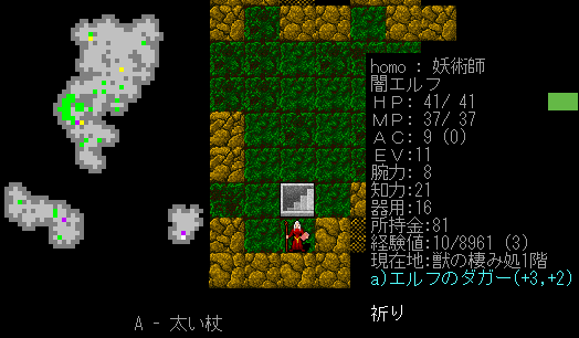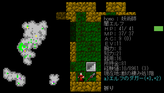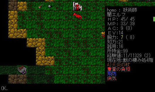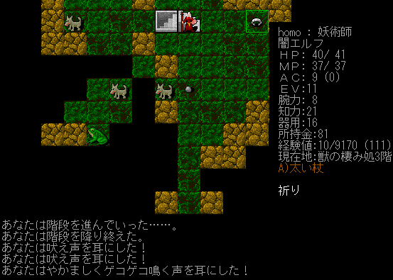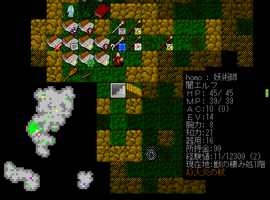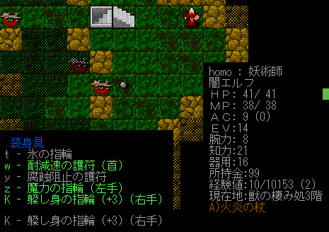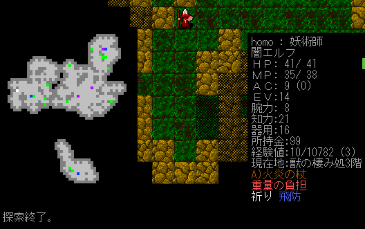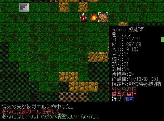 Dungeon Crawlのプレイ日記を始めます。闇エルフ炎の精霊使いをプレイ中です。前回は『獣の棲み処』に到達。ベースキャンプを作って身軽になりました。